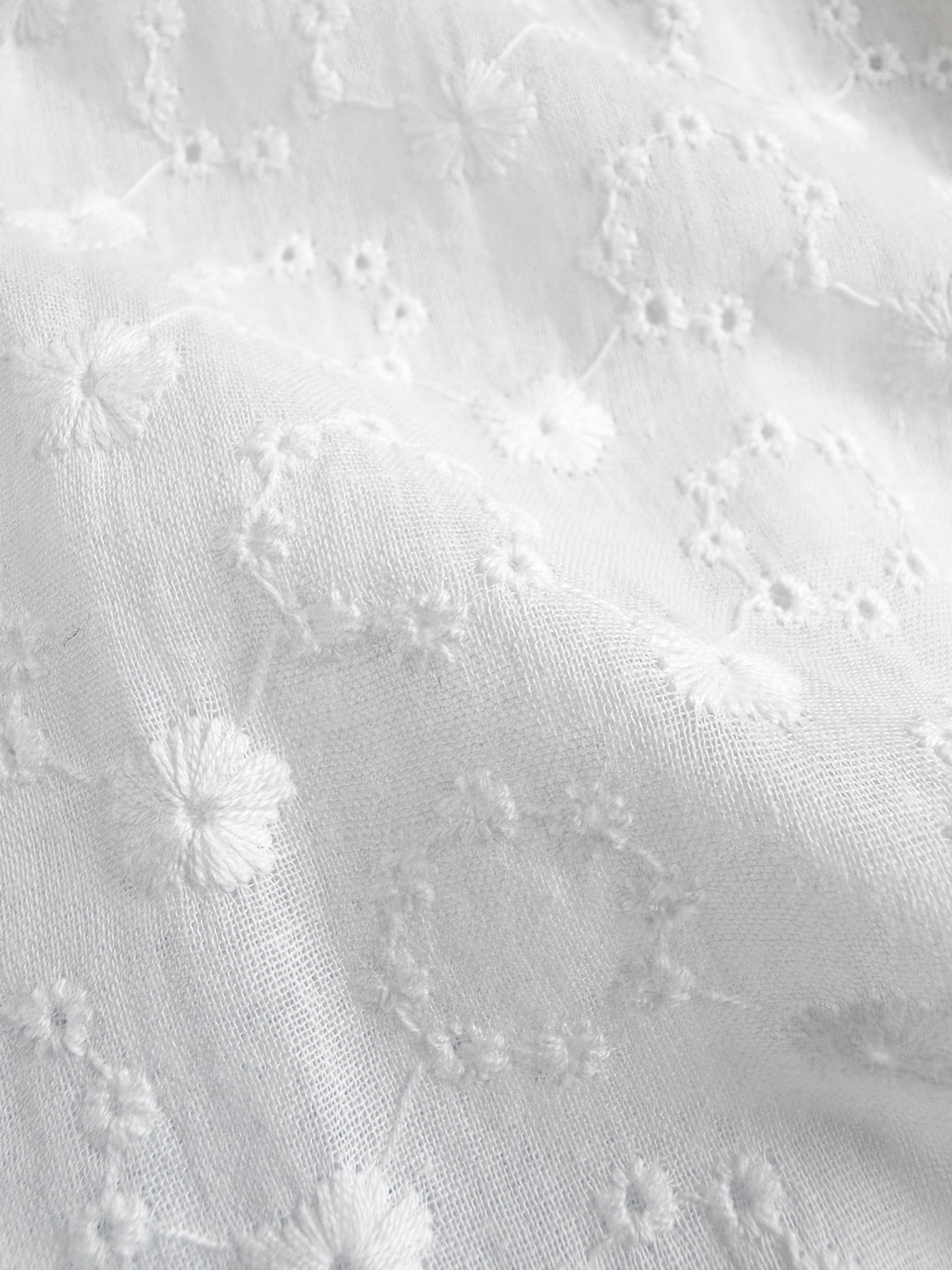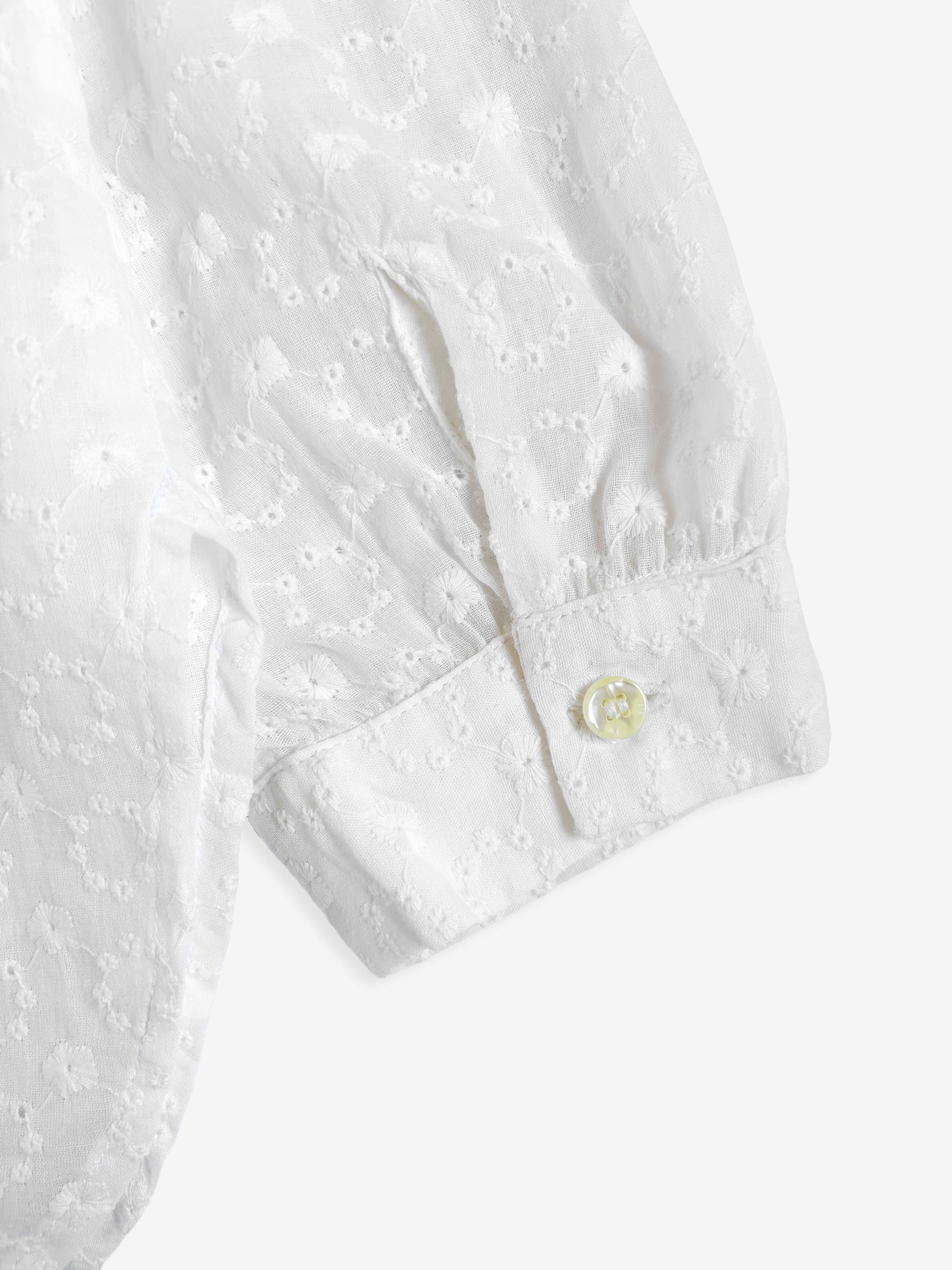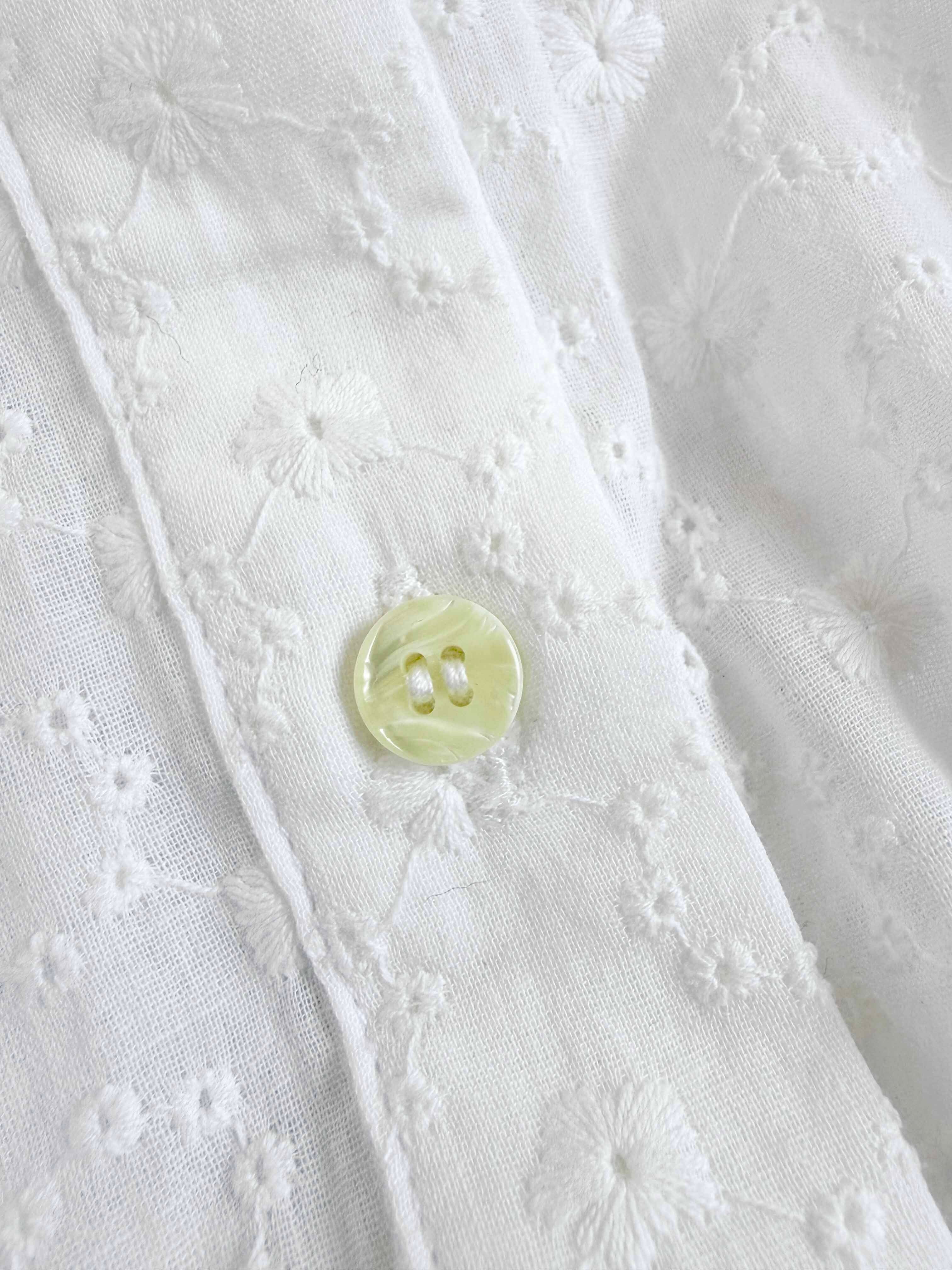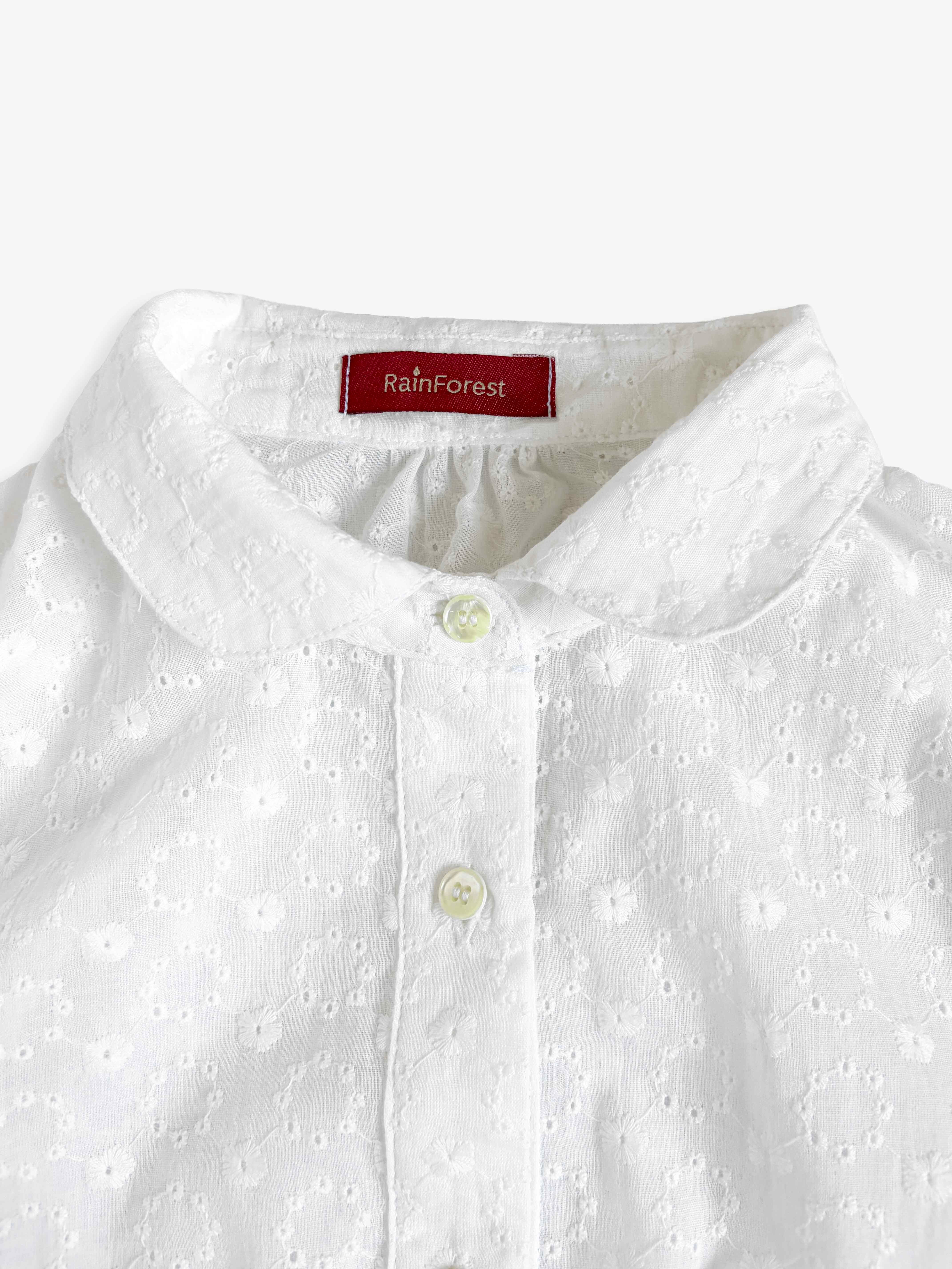 繊細なレースと襟や裾のデザインに丸みを加えてフェミニンな雰囲気を