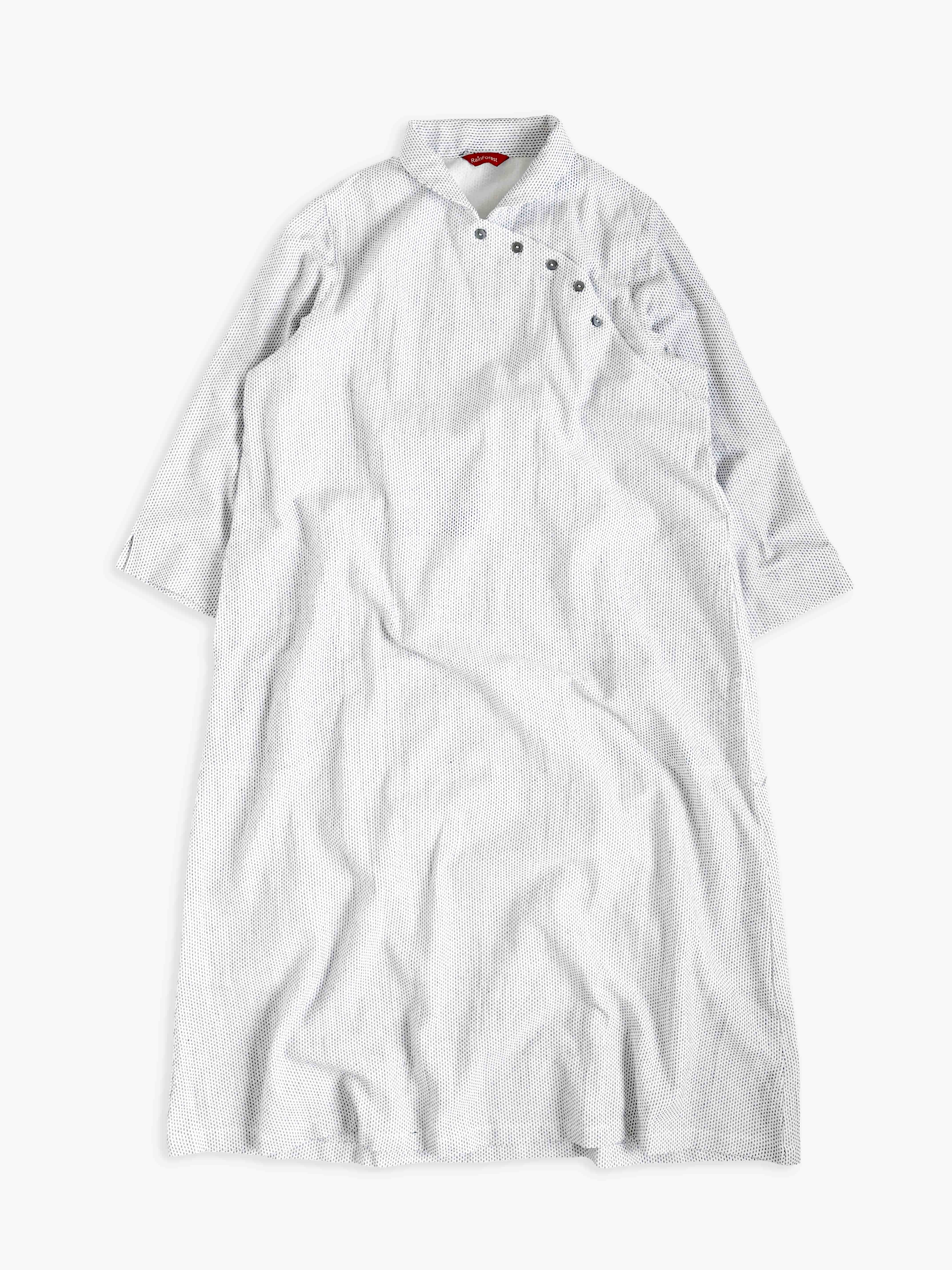 チャイナカラーでオリエンタルな雰囲気をプラスしたワンピースです。程よくゆとりがありながら、切り替えのないストンとしたシルエットですっきりとした仕上がりに。襟はその日の気分で立てても折っても楽しめる仕様になっています。優しい肌触りの綿生地で着心地も◎