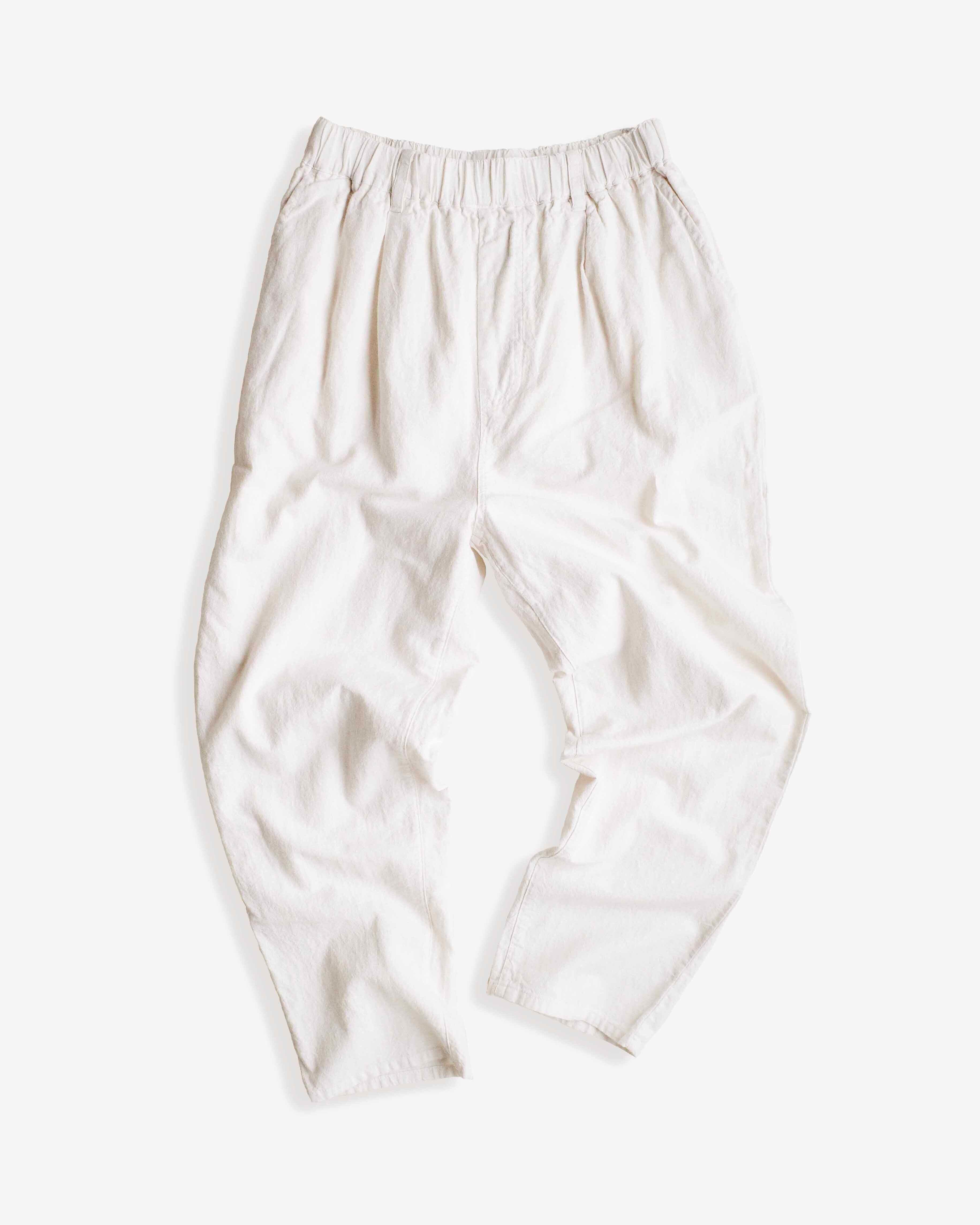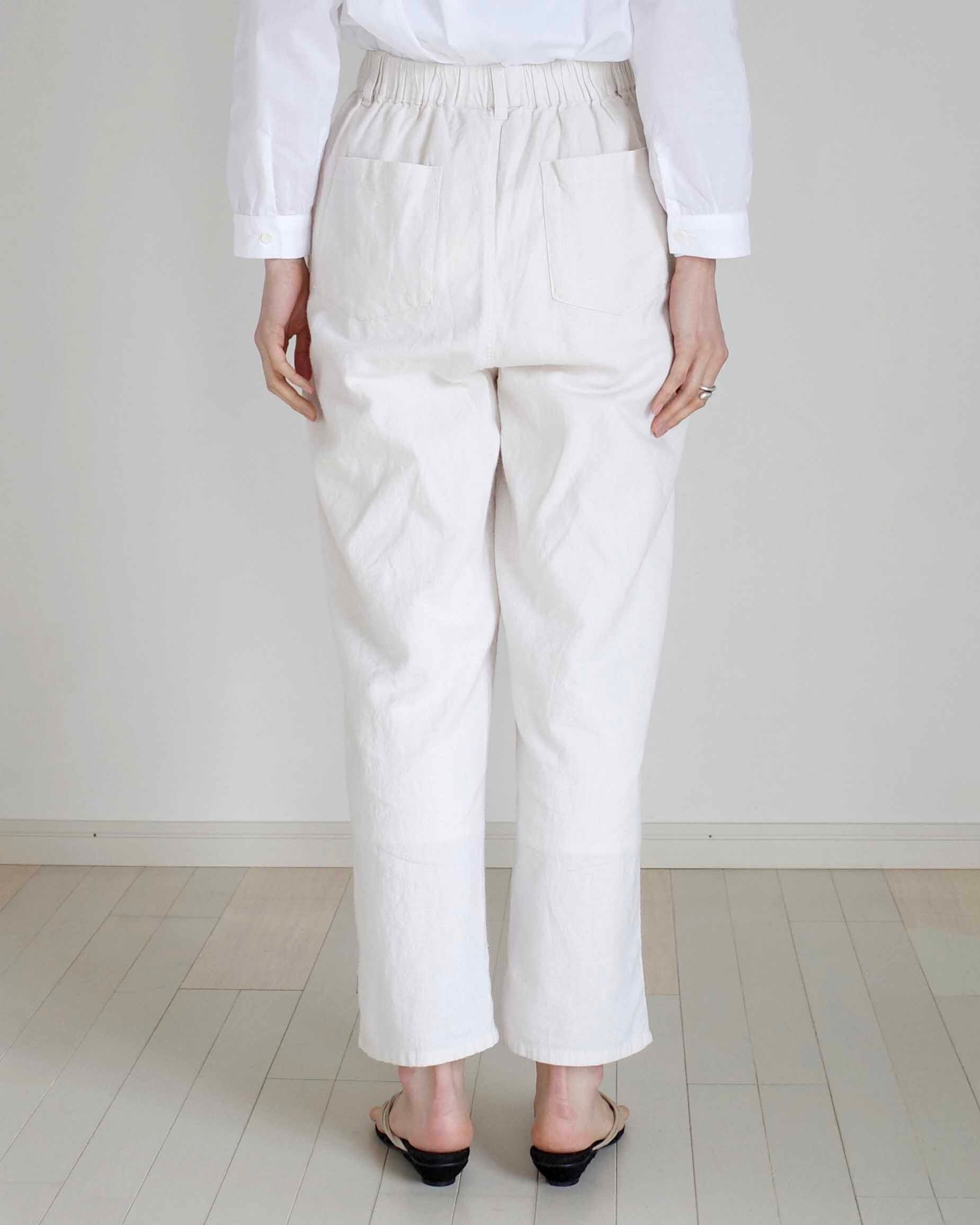 自然な風合いが魅力の、ストレートシルエットのパンツが登場しました。耐久性・吸湿性・吸水性に優れたコットンリネンの生地を使用しています。 また、軽めの素材感で履き心地もよくウエストはゴムの楽ちん仕様なのも嬉しいポイント。裾に向かって細くなるテーパードデザインは、足首をスッキリ見せてくれる効果もあります。 どんなシチュエーションにも合わせやすく、オールシーズン活躍してくれる万能パンツです。