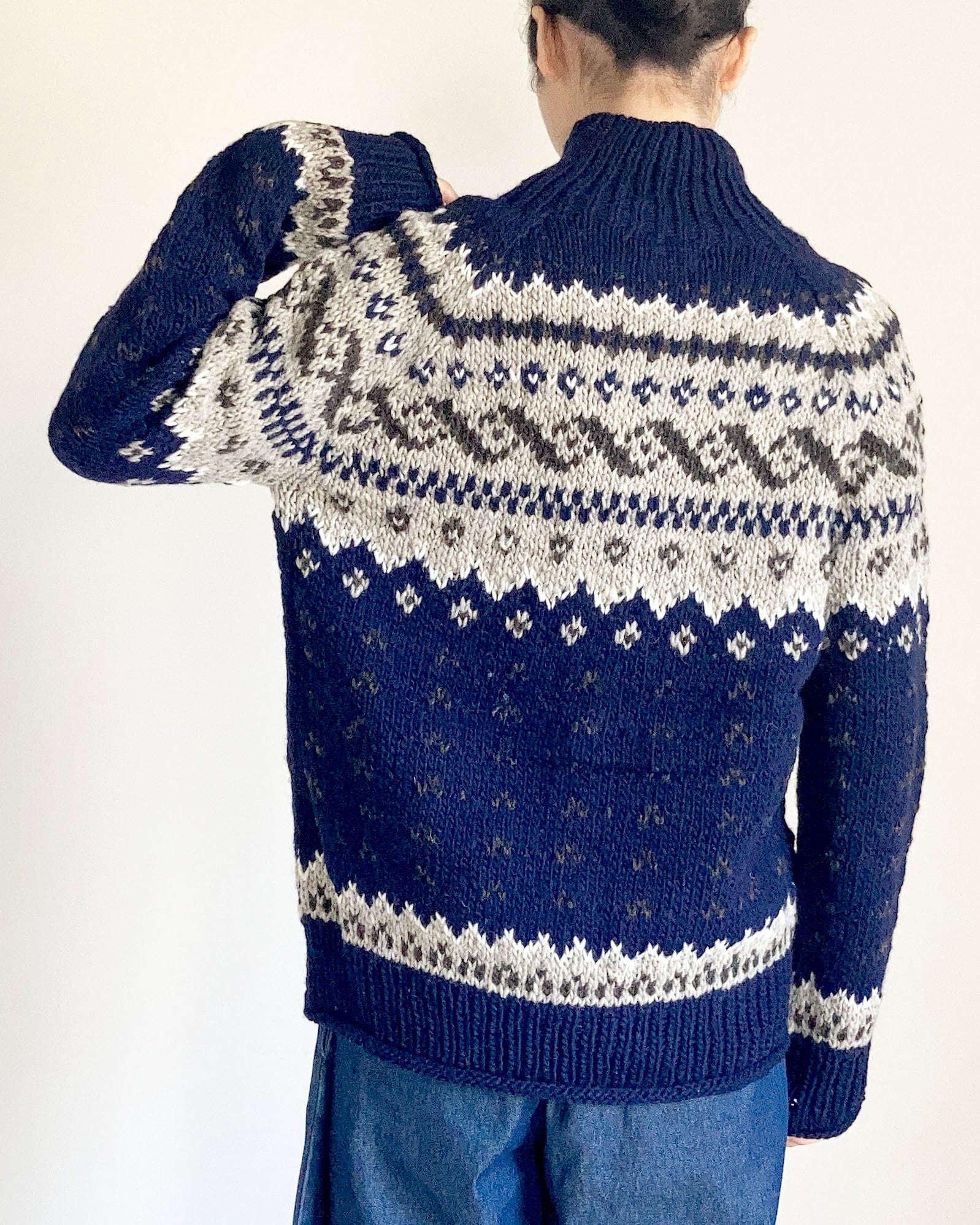 南米ペルーのアンデス地域、標高約3,800mにあるチチカカ湖周辺に古くから暮らす編み子さんたちが丹精を込めて1枚1枚手作業で編み上げました。ペルーニット特有の温かみのある風合いをお楽しみください。